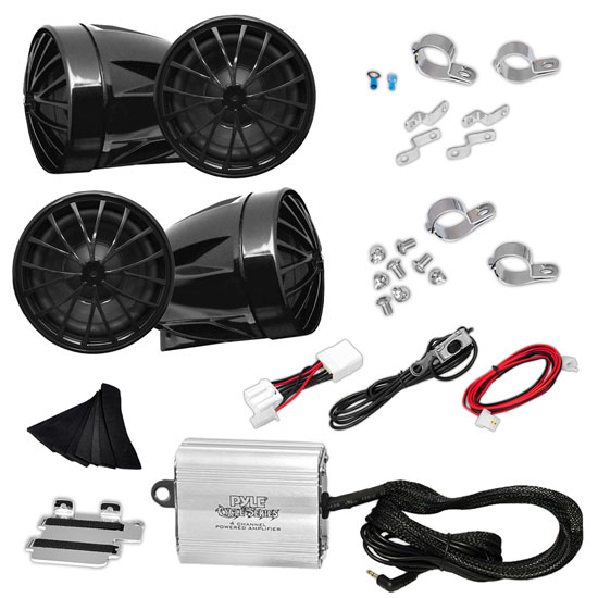 800 Watt Weatherproof Motorcycle/ATV/Snowmobile Amplifier System w/Dual Handle-Bar Mount, Speakers & iPod/MP3 Input (PLMCA76)