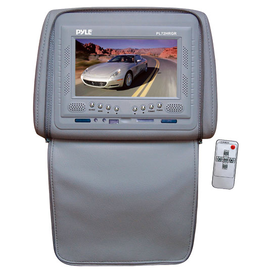 Adjustable Headrests w/ Built-In 7” TFT/LCD Monitor W/IR Transmitter & Cover (Gray) (RBPL72HRGR)