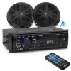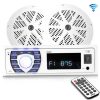 Bluetooth Marine Receiver Stereo & Speaker Kit, Hands-Free Calling, Wireless Streaming, MP3/USB/SD Readers, AM/FM Radio, (4) 6.5” Waterproof Speakers (White) (PLMRKT38W)