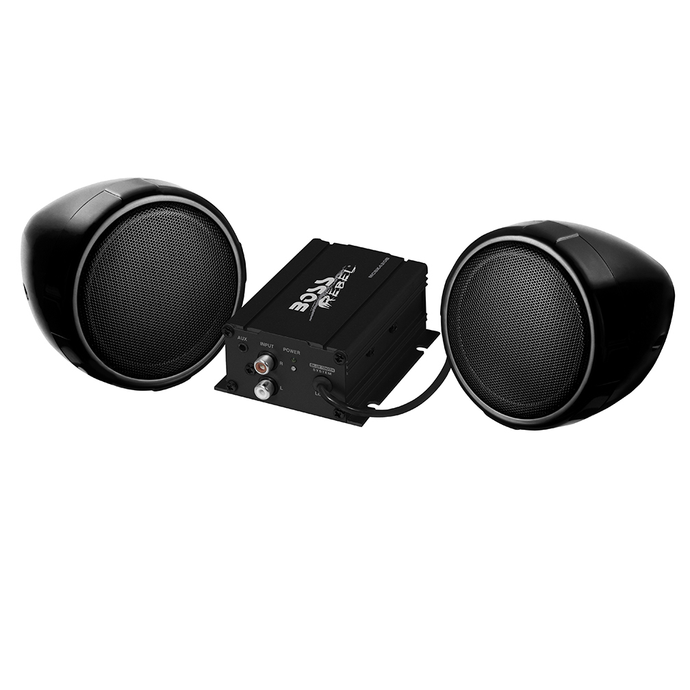 Boss Motorcycle/UTV Speaker and Amplifier System 3″ Bluetooth Speakers 600 Watts BLACK Housing MCBK420B