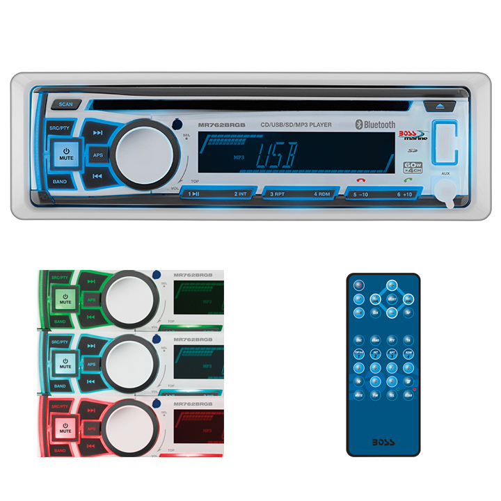 Boss Single din Marine Bluetooth/MP3/CD/CDRW/AM/FM front aux input wireless remote MR762BRBG
