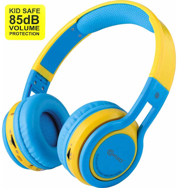 Contixo Kids Headphone 85DB Over Ear Foldable Wireless Bluetooth MicroPhone SDCard Music FMRadio Blu KB2600BLYW