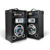 Disco Jam Dual Bookshelf Stereo Speaker System, USB/SD/MP3 Streaming, FM Radio, Flashing DJ Lights (PSUFM826LED)