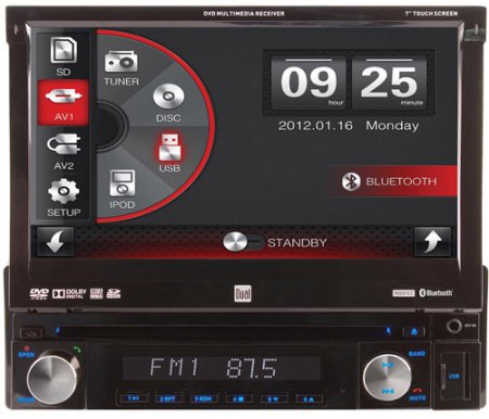 Dual 7 Inch Single din In dash Dvd Receiver With Motorized Touchscreen & Bluetooth
