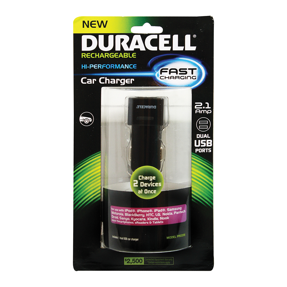 Duracell Dual USB Car Charger – Black PRO208