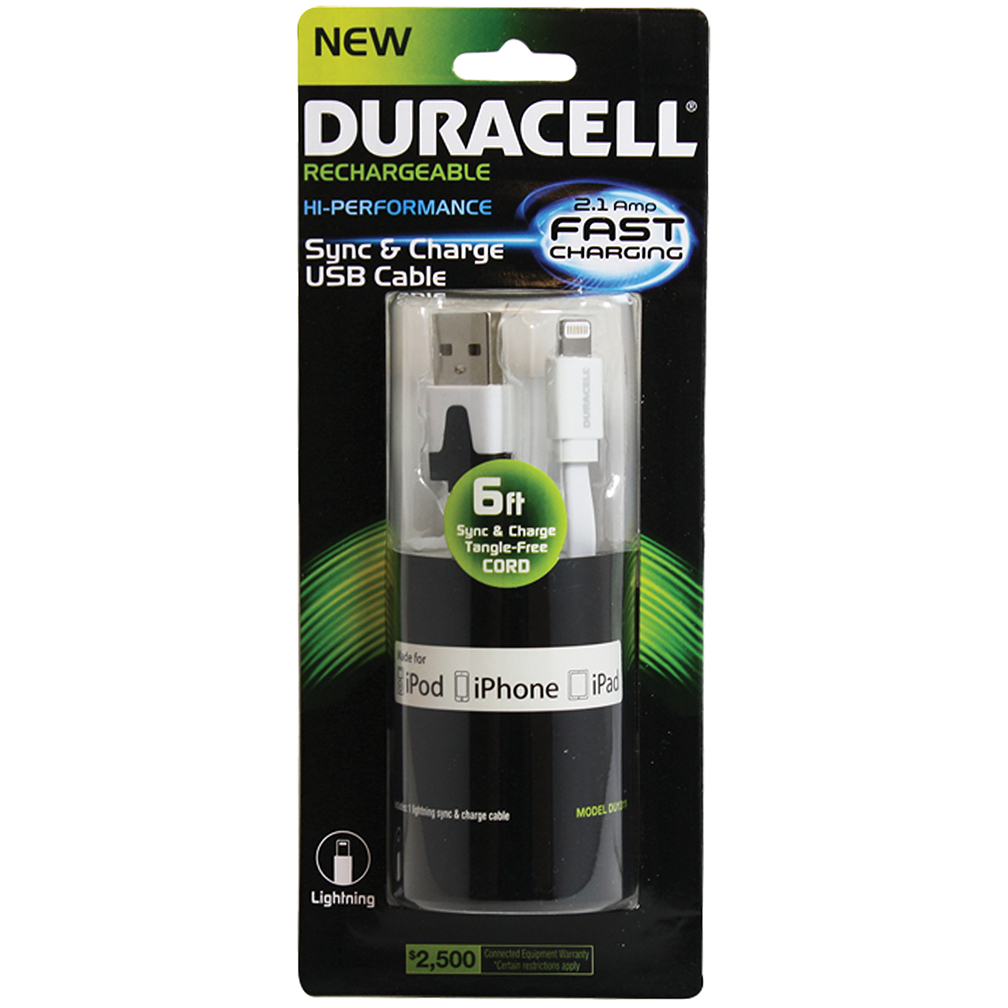 Duracell Standard USB to Lightning Sync and Charge Flat Cable 6′ (White)