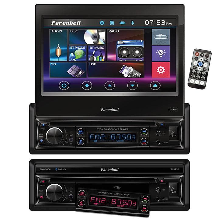 Farenheit Single Din 7″ Flip out Touchscreen with DVD & BT TI895B
