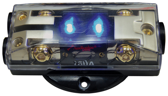 FUSEBLOCK AUDIOPIPE 2 POSITION ANL PLATINUM W/BLUE LED