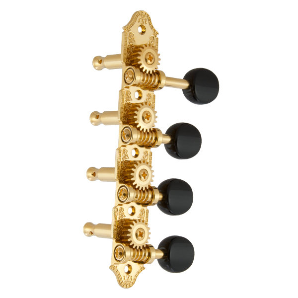 These new, professional model mandolin machine heads are the latest in technology. A specially designed, adjustable worm gear along with the die cast base maintains the center lines of the gear and worm to insure correct alignment for the finest tuning possible. The worm to gear ratio is 18:1.