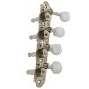 These new, professional model mandolin machine heads are the latest in technology. A specially designed, adjustable worm gear along with the die cast base maintains the center lines of the gear and worm to insure correct alignment for the finest tuning possible. The worm to gear ratio is 18:1.