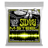 Ernie Ball M-Steel Electric Guitar Strings are made of a patented Super Cobalt alloy wrapped around a Maraging steel hex core wire, producing a richer and fuller tone with a powerful low-end response. M-Steel plain electric guitar strings are comprised of a specially tempered steel for maximum fatigue resistance. The electric plain strings also utilize a patented winding of steel around the ball end that reduces slippage, breakage and stays in tune better than conventional plain strings. Gauges .09, .011,.016, .026, .036, .046