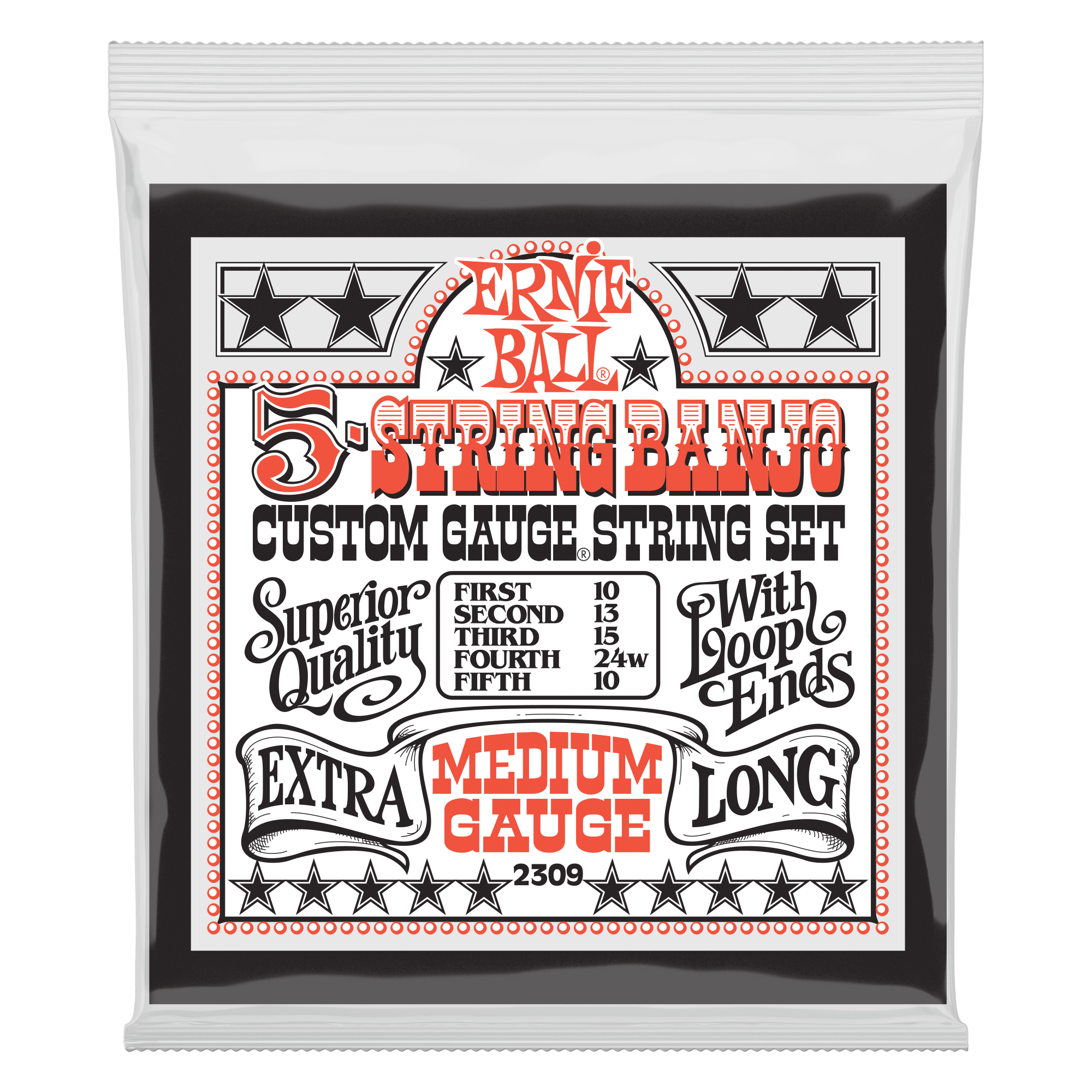Medium 5-String Loop End Stainless Steel Banjo Guitar Strings – 10-10 Gauge