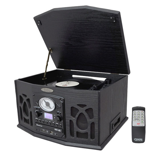Vintage Turntable With CD/Cassette/Radio/Aux-In/USB/SD/MP3 and Vinyl-to-MP3 Encoding (PTCDS5U)