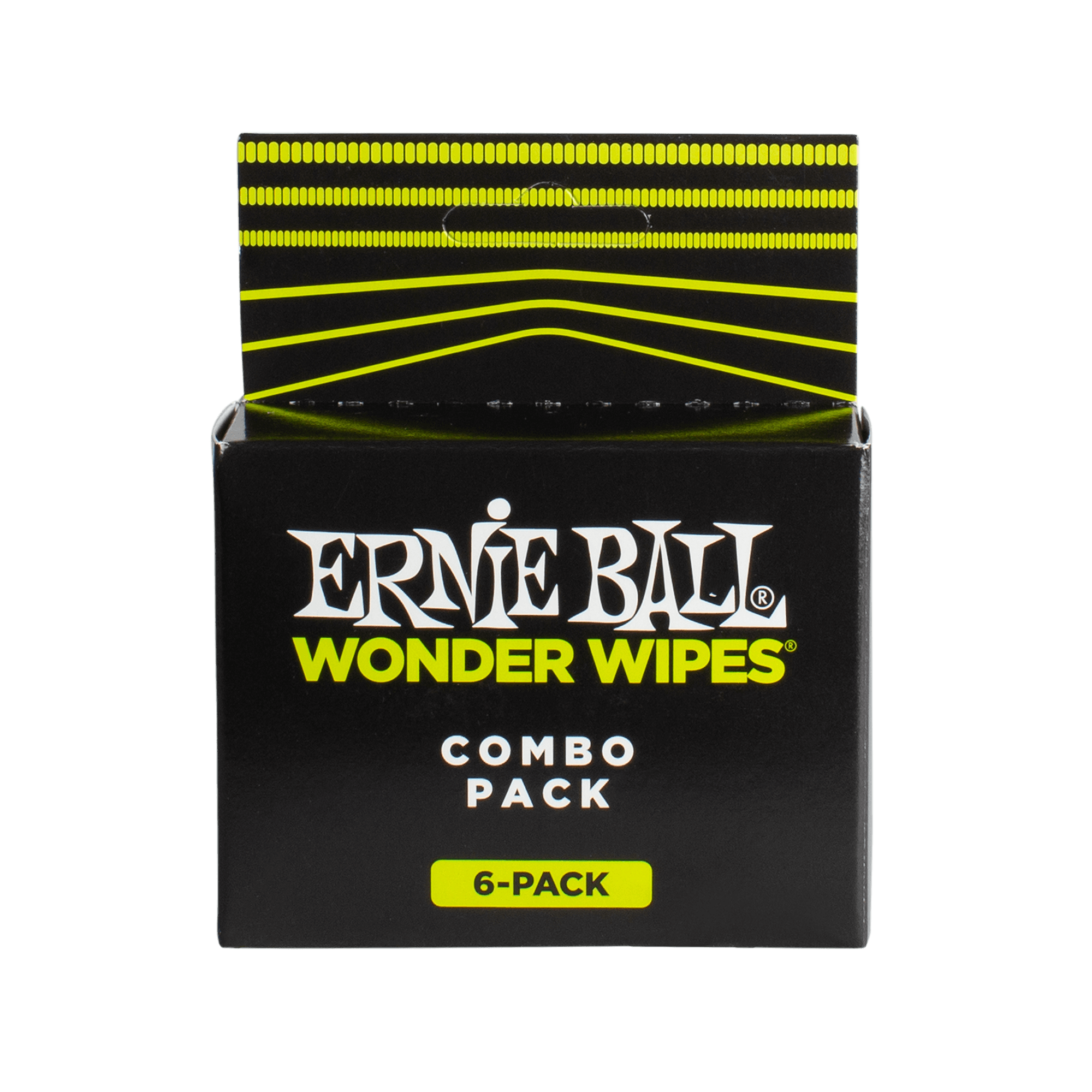 Wonder Wipes Combo 6-pack of individually sealed instrument care wipes. Each box includes 1 pack of Fretboard Conditioner, 2 packs of Instrument Polish, and 3 packs of String Cleaner.